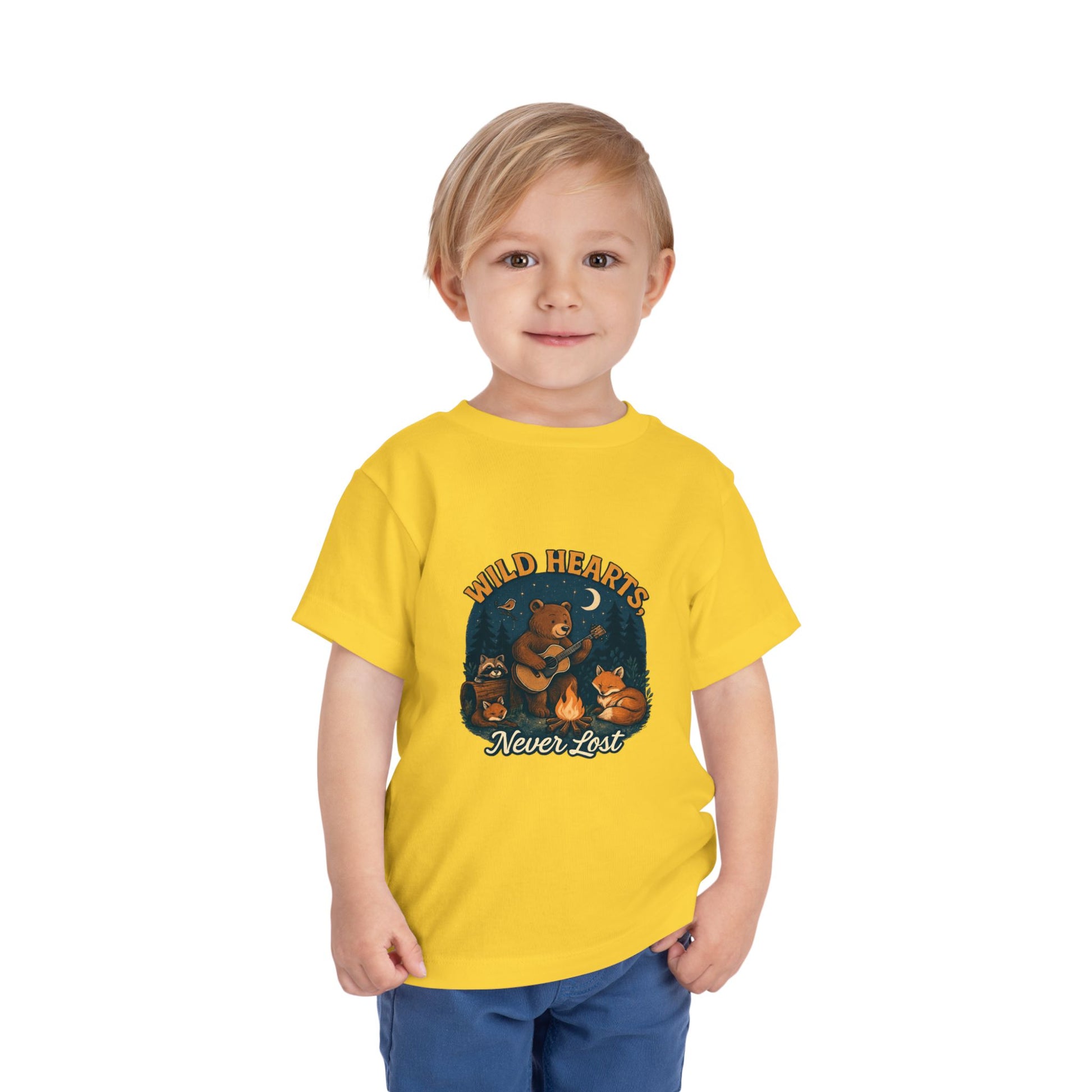 Wild Hearts Never Lost Toddler Tee — Bear Guitar Campfire Kids T-Shirt